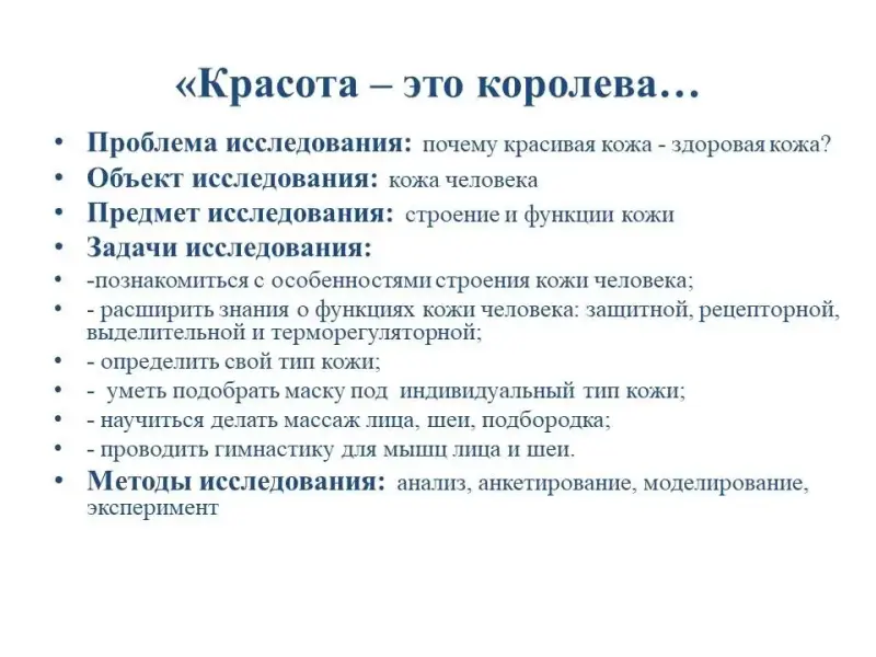 - Проблема исследования: почему красивая кожа - здоровая кожа?