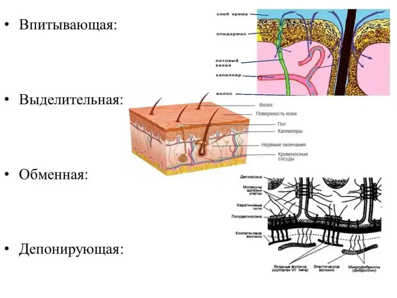 Впитывающая: через кожу могут проникать как лекарственные, так и токсические продукты.