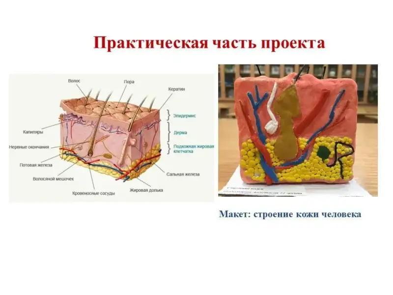 - смоделировали макеты строения кожи и процессы, происходящие в ней;