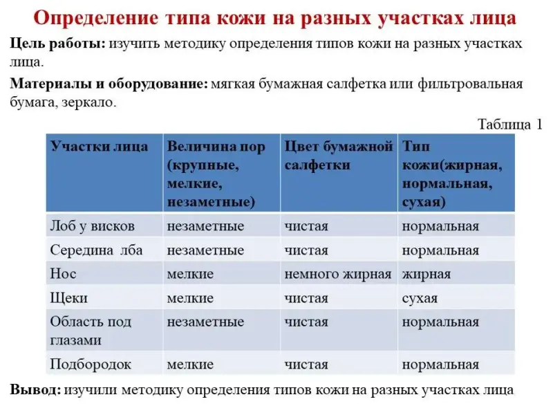 Вывод: определение типа кожи очень важно для правильного ухода за ней.