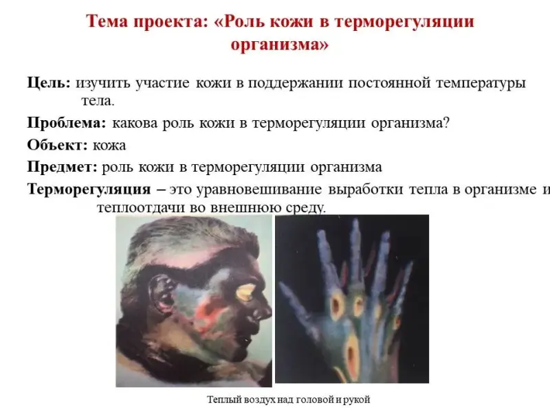 Цель: изучить участие кожи в поддержании постоянной температуры тела.