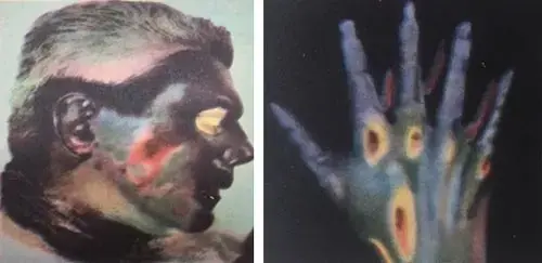 которая окрашивается в различные цвета в зависимости от теплорегуляции отдельных участков кожи.