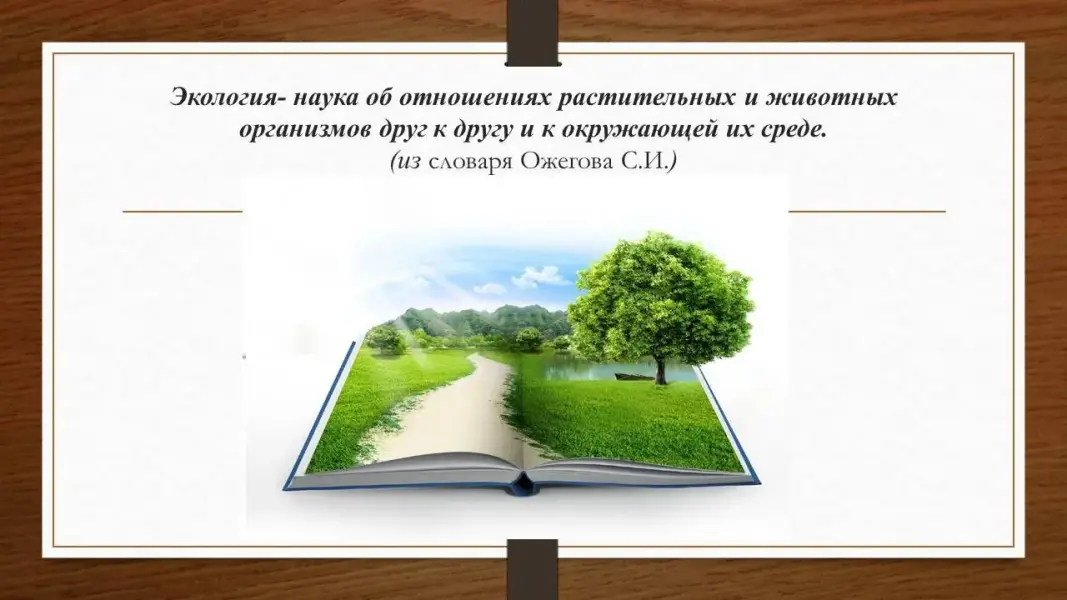 - Посмотрим в словарь Ожегова С.И., что же здесь означает данное слово? Экология- наука об отношениях растительных и животных организмов друг к другу и к окружающей их среде.