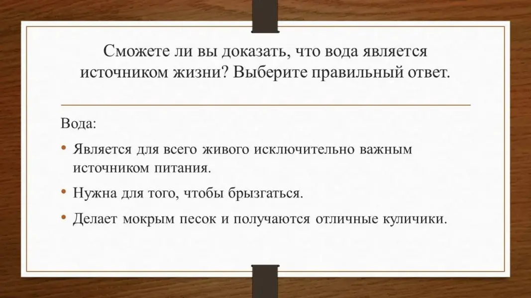 - Сможете ли вы доказать, что вода является источником жизни? Выберите правильный ответ.