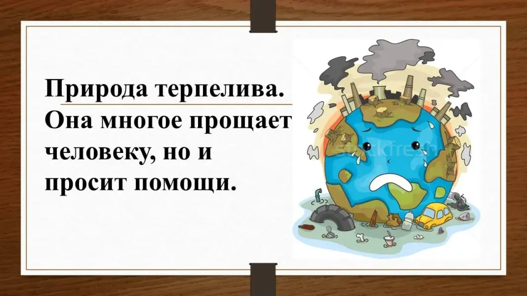 - Какое негативное влияние на природу оказывает человек? Природа терпелива. Она многое прощает человеку, но и просит помощи. Давайте и мы подумаем о том, как ей помочь? (Ответы детей)