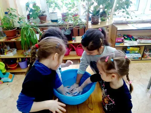- В емкость с водой опустите руку и тут же выньте ее. Посмотрите на нее внимательно. Она мокрая, то есть, покрыта тонким слоем воды. И если бы сейчас ударил мороз, то эта вода превратилась бы в корочку льда. Теперь вытрите руки и слегка смажьте их жиром (детский крем).