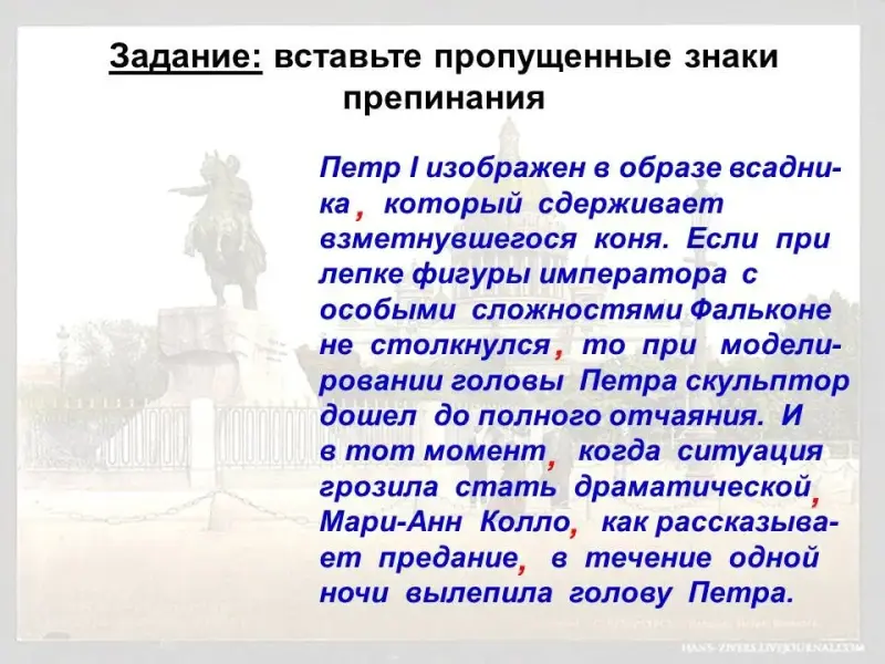 Задание: вставить пропущенные знаки препинания