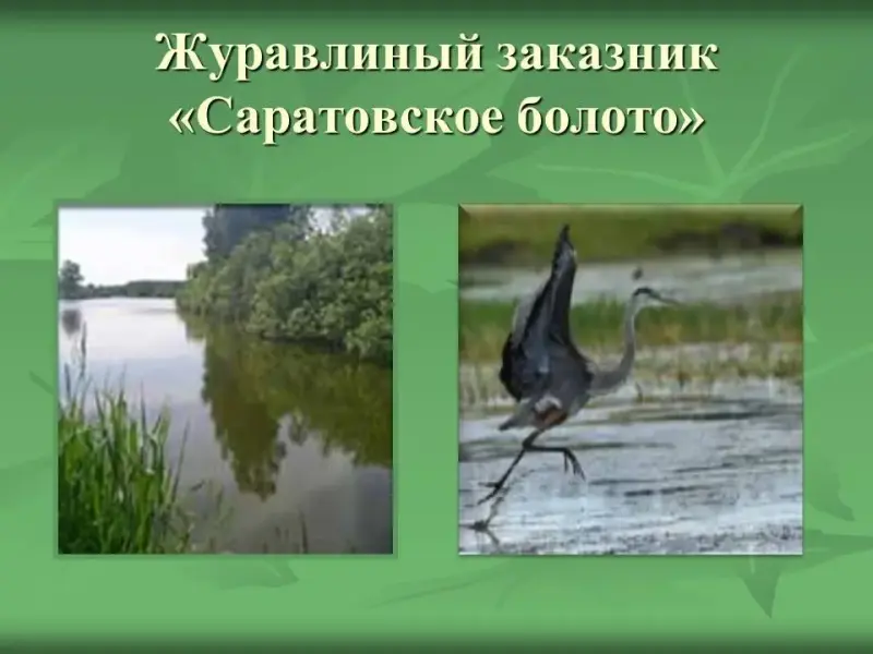 - Совсем недавно на территории Сухобузимского района был создан заказник «Саратовское болото» для охраны гнездящихся здесь журавлей и других околоводных птиц, в том числе и занесенных в Красную книгу Российской Федерации. Саратовское болото относится к водно-болотным угодьям, внесенным в Перспективный список Рамсарской конвенции ("Теневой список" водно-болотных угодий, имеющих международное значение), и, вопреки названию, - это старое, сильно заросшее русло Енисея, тянущееся в длину примерно на 10 километров, а в ширину достигающее до 1400 метров. Местным жителям это русло знакомо как место скопления журавлей.