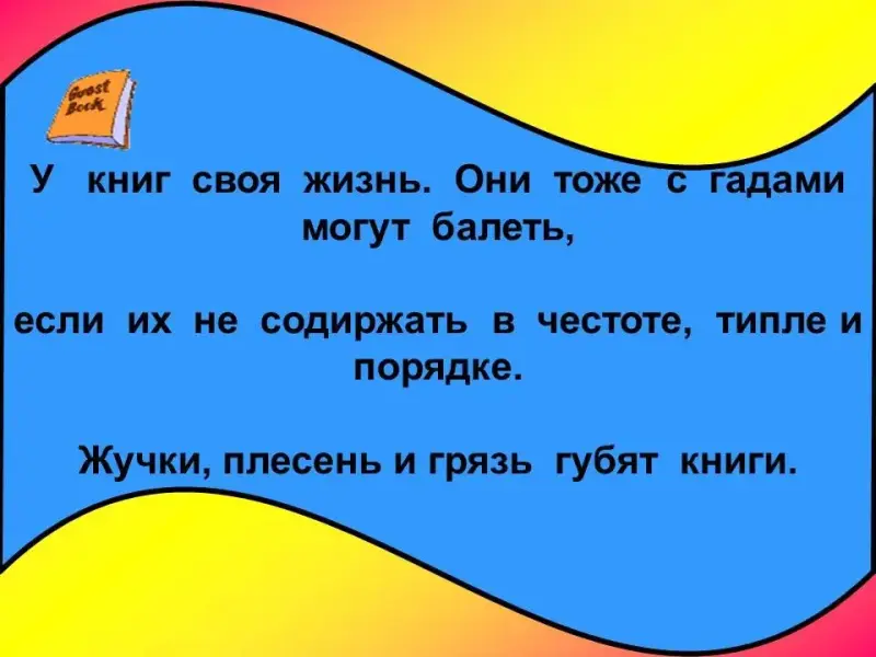 У книг своя жизнь. Они тоже с гадами могут балеть, если их не содиржать в честоте, типле, и порядке. Жучки, плесень и грязь губят книги.
