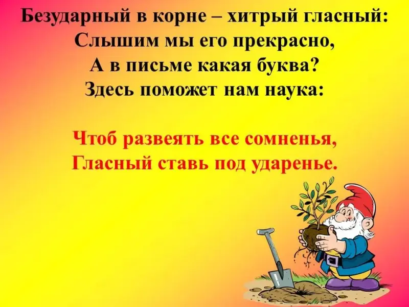- Совершенно верно, мы будем закреплять умение писать слова с безударной гласной в корне и, главное!, проверять их.
