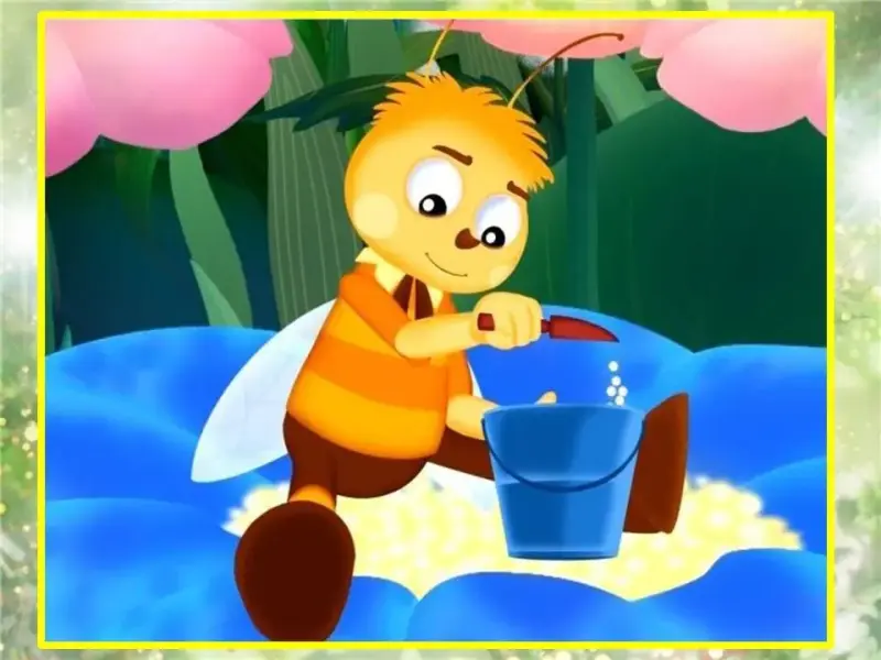 Воспитатель: Посмотрите, ребята, Пчеленок решил собрать нектар. Но ему не хватило ведра.