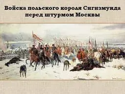 Ведущий: А войска польского короля Сигизмунда вторглись в Русские земли. Очень хотелось Сигизмунду захватить непокорную страну. Поляки дошли до самой Москвы. Испугавшиеся их бояре открыли ворота Кремля и признали право царствования на Руси польского королевича Владислава. |