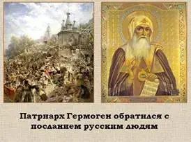 Ведущий: Поляки схватили и посадили в темницу русского патриарха Гермогена, который отказался благословить царствование польского королевича, не предал православной веры Святой Руси. Из заточения патриарх Гермоген обратился с посланием к русским людям, призывая народ объединиться и освободить Русскую землю от захватчиков. |