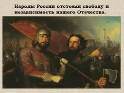 Страница 5. «Да, были люди в наше время…» Ведущий: Подвиг ополчения, собранного Кузьмой Мининым и возглавляемого князем Дмитрием Пожарским и подвиг простого крестьянина Ивана Сусанина - называют великим делом в русской истории. 405 лет назад народы России, объединённые идеями согласия, сплочения, сохранения государства смогли отстоять свободу и независимость нашего Отечества. |