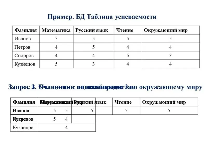 - Образовательные: познакомить учащихся с основными понятиями, научить создавать простые и сложные запросы на выборку в базе данных, сортировку данных.