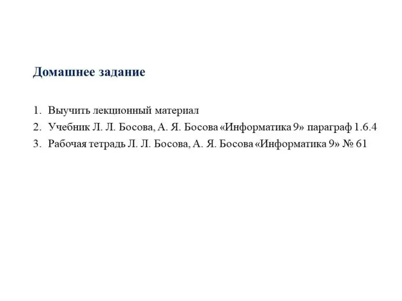 - Рабочая тетрадь Л. Л. Босова, А. Я. Босова «Информатика 9» № 61