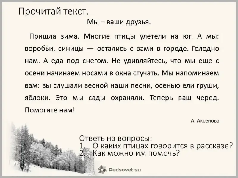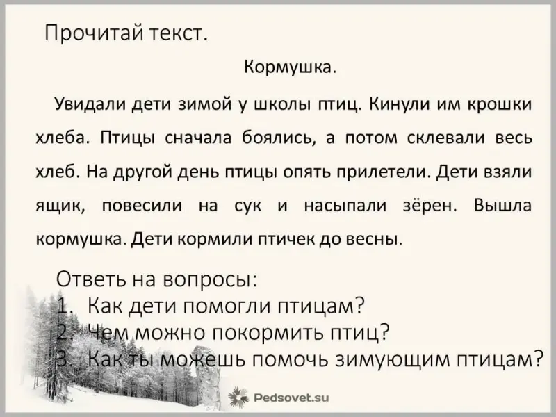 Слайд 10 (Прочитать текст «Кормушка» и ответить на вопросы)