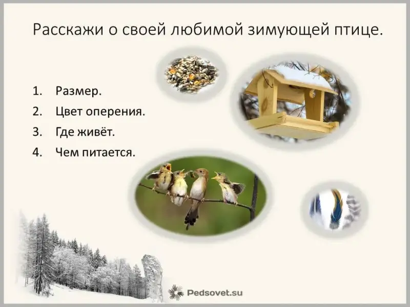 Слайд 13 (Расскажите о своей любимой зимующей птице)