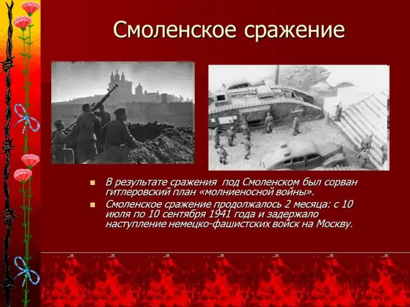 Учитель: Красная Армия терпела одно поражение за другим, отходя все дальше вглубь страны. Около двух миллионов советских солдат попало в плен или погибло. Причинами поражений стали неготовность армии к войне, серьезные просчеты высшего руководства, преступления сталинского режима, внезапность нападения. Но и в эти тяжелые месяцы советские воины героически сражались с врагом.