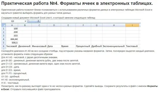 Форматы ячеек. Оформление мультиформатных таблиц |