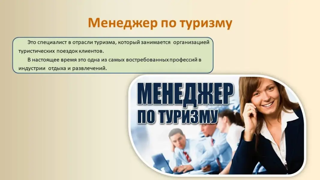 Менеджер по туризму - это специалист в отрасли туризма, который занимается организацией туристических поездок клиентов.