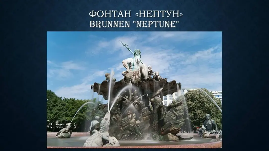 Schüler 3: (слайд 6-10) Unter den Linden ist die Hauptstraße Berlins. Hier befinden sich viele Botschafter, Büros, Kaufhäuser, Cafés, die weltberühmte Humboldt-Universität und die Stadtbibliothek. Die Straße ist 1390 m lang und 60 m breit. Hier befinden sich viele Hauptsehenswürdigkeiten der Stadt: das Brandenburger Tor, die Berliner Staatsoper, die Humboldt-Universität, der Berliner Dom und viele andere. Heinrich Heine ging hier sehr gerne spazieren, und für Mark Twain war dieses Boulevard "drei Straßen in einem". Die Linden, die auf dem Befehl von Friedrich Wilhelm gepflanzt wurden, gaben der Straße ihren Namen. Friedrich Wilhelm war ein großer Jägerfreund, dessen Residenz sich auf einer Insel befand, umgeben mit dem Wasser des Flusses Spree. Die Straße war damals ein Reitweg, der vom Berliner Schloss bis zu Jagdründen führte. Heute befindet sich auf diesem Gelände der Tiergarten. Unter den Linden beginnt an der Schlossbrücke, die mit Skulpturen aus weißem Marmor geschmückt ist. Hier sind alle Hauptwahrzeichen Preußens konzentriert: die Oper, das Arsenal, die Universität, das Schloss von Wilhelm I. Das größte Denkmal aus Bronze "Alter Fritz" endet einen Teil der Straße Unter den Linden.