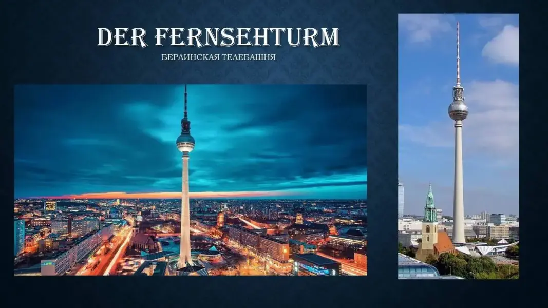 Der Lehrer: (слайд 22) Es gibt viele schöne Plätze in Berlin, wo die Einwohner und die Touristen die Zeit wunderschön verbringen können. Heute werden wir mit dem Alexanderplatz