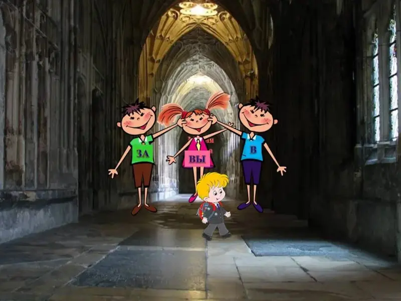 Около дверей стояли необыкновенные человечки. На рубашечке одного из них было написано «В», на футболке другого - «ЗА».