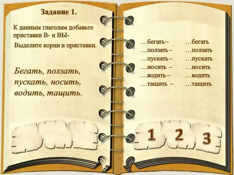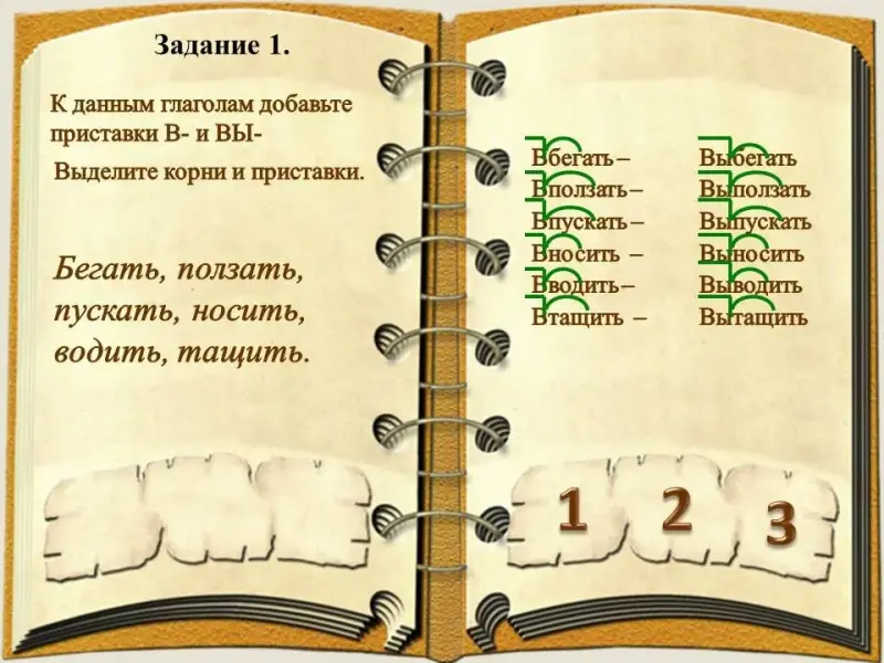 - расширять словарный запас за счёт приставочных глаголов;