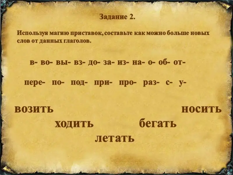 Л. - Используя магию приставок, составьте как можно больше новых слов от данных глаголов.
