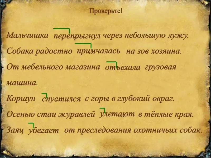Л. - Найдите и подчеркните в рассказе главные члены предложения. Какой частью речи выражено сказуемое? (Работу выполняют с комментированием.)