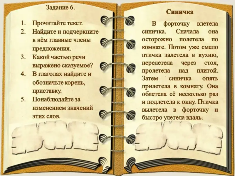 Л. - Можно ли все глаголы из этого текста назвать родственными словами? (Да.) Почему? (Все слова говорят о том, что птица летает) Какую роль играют приставки в этих словах? (Приставки более точно рассказывают об особенностях перемещения синицы в пространстве).