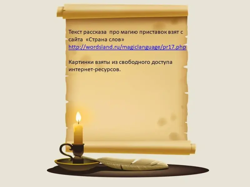 Волшебница Приставка 1: - Знаю, зачем пожаловали. Но вам придётся потрудиться. На первый взгляд в приставках нет никакого смысла. Ну что может значить отдельно «в» или «вы»? А так или это? Или всё-таки приставки имеют какое-то значение?