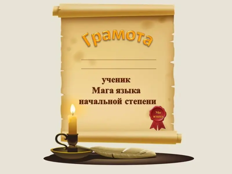 - Волшебницы Приставки награждают вас за достижения на уроке грамотами (или медалями) «Ученик Мага языка начальной степени». (слайд 35)
