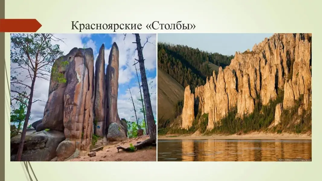 Учитель биологии: «ГРИНПИС» в переводе с английского означает «Зелёный мир». Это общество занимается не только охраной редких исчезающих растений и животных, но и берёт под опеку памятные природные места. Активисты «Гринпис» не оставляют без внимания все «точки», где страдает окружающая среда. В Советском Союзе организация зарегистрирована в 80-х годах. У нас в России в Красноярском крае есть место под названием «Столбы». Это природой созданные скалы.