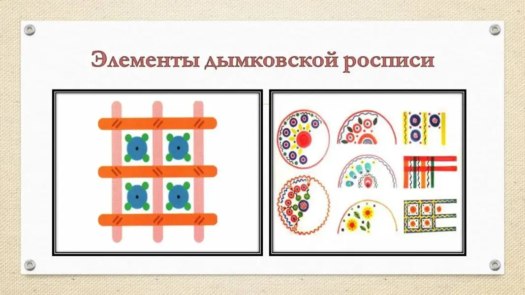 - Беседа об истории, отличительных особенностях и традиционных орнаментах Дымковской игрушки.