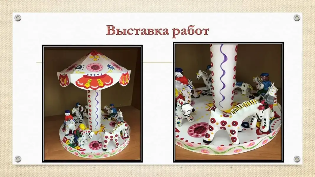 В конце урока учащиеся демонстрируют свои работы, рассказывают о своих замыслах и их воплощении. После этого организуется выставка работ. Учитель не забывает похвалить каждого ученика, отметив в игрушке то, что лучше всего удалось. (Слайд 31, 32)