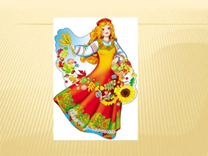 Осень. Здравствуйте, детушки мои дорогие! Здравствуйте, солнышки мои золотые! Как я рада видеть вас! Рада вашему смеху расчудесному! Рада улыбкам вашим прекрасным! А вы знаете, кто я? (Ответы детей.)