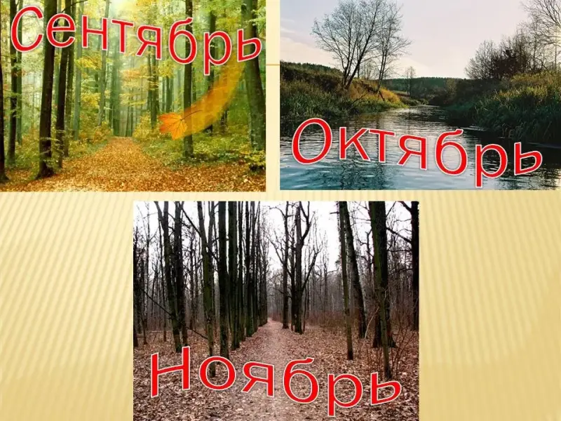 Осень. - Молодцы, ребята! А знаете, как называются мои месяцы? (Сентябрь, октябрь, ноябрь.)