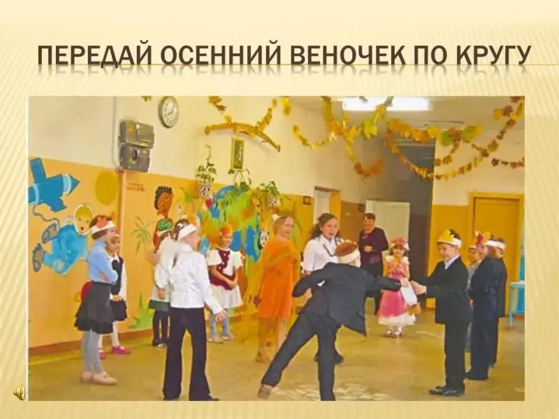 Помощники загадывают загадки, за правильный ответ Осень вручает «отгадку» из корзины.