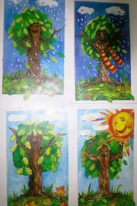 Материал к занятию: Иллюстрации осенних пейзажей с изображением дуба по тексту стихотворения, карточки желтого цвета по количеству детей, текст стихотворения.