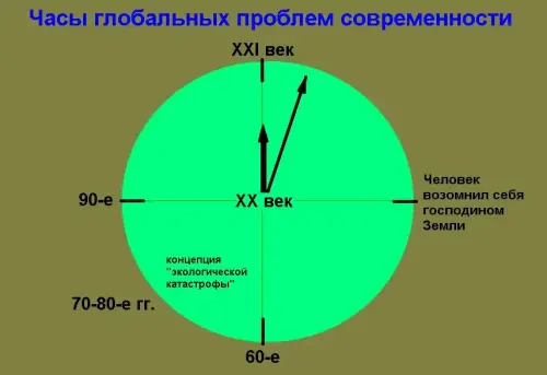 Глобальные проблемы появились не вчера, но это очень «молодая» проблема человечества. Если представить ХХ век в виде циферблата, то эволюция проблемы выглядит так: