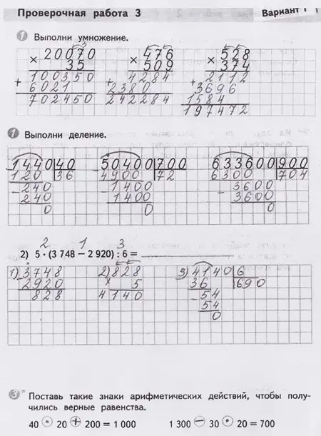 Урок развивающего контроля по теме "Контрольная работа «Письменное умножение и деление на двузначное и трехзначное число»". 4-й класс