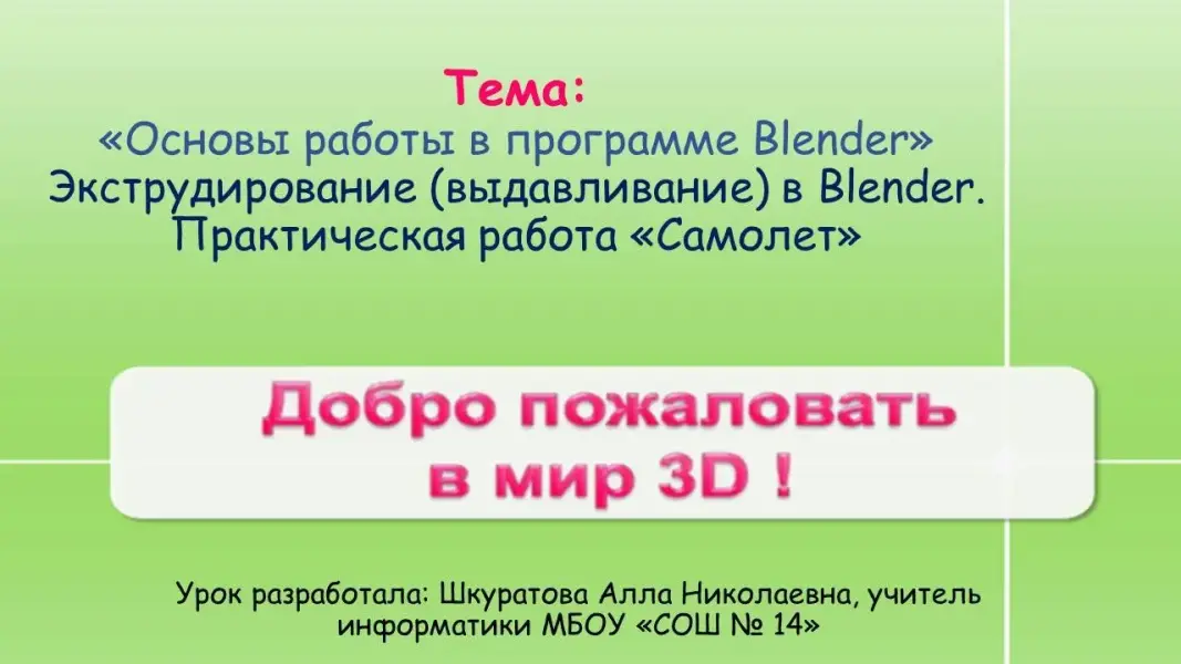 Тема: «Основы работы в программе Blender». Экструдирование (выдавливание) в Blender