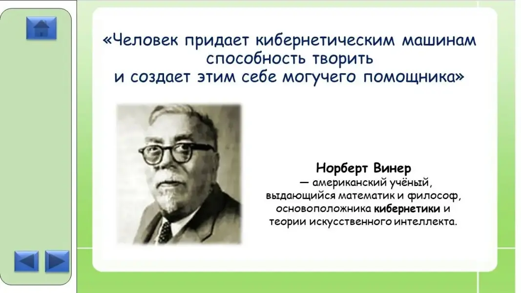 Эпиграфом нашего урока стали слова американского учёного, выдающегося математика и философа, основоположника кибернетики и теории искусственного интеллекта Норберта Винера.