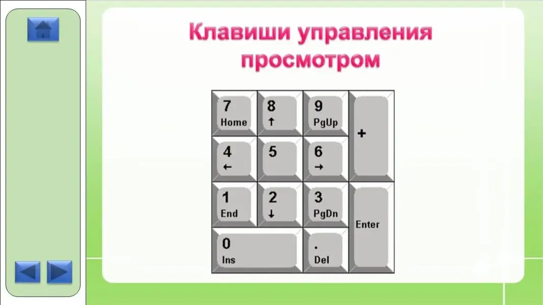 - Клавиши управления просмотром.