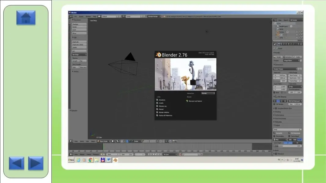 После запуска Blender 2.76 на экране появится следующее окно: