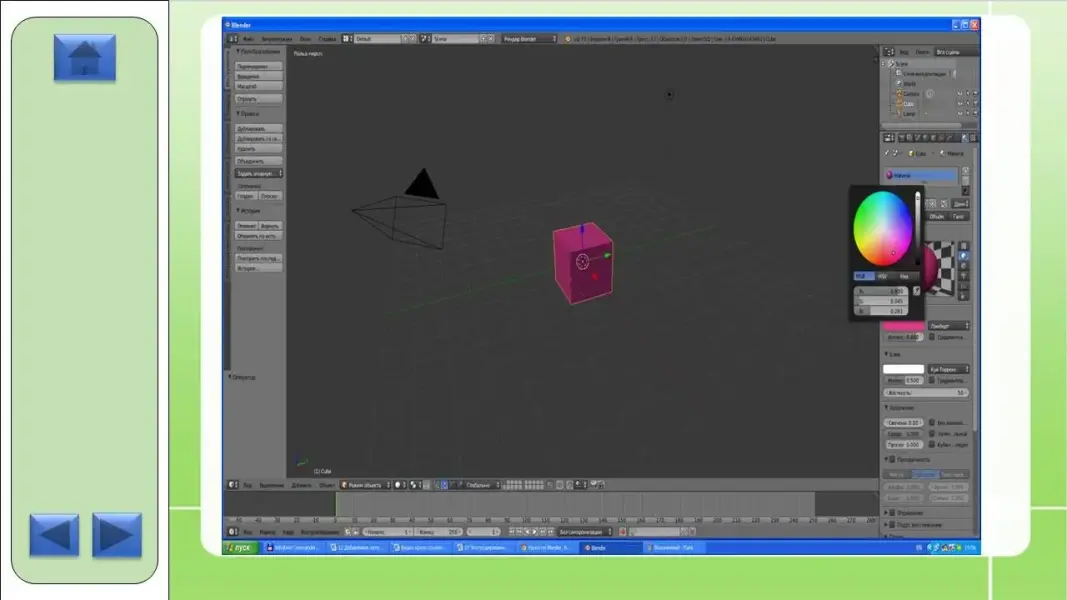 Материал - это не только цвет объекта. Существуют множество других его свойств, например, прозрачность и отражающая способность, которые будут рассмотрены ниже. Однако сначала разберем, как поменять цвет объекта.