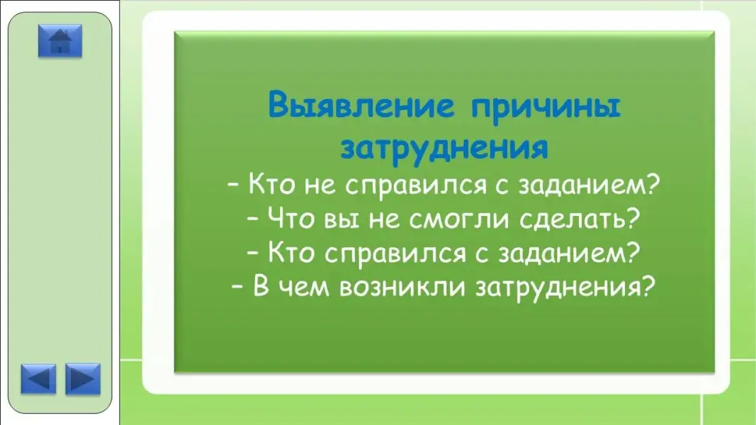 Выявление причины затруднения.
