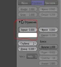 В левом окне (окне моделирования) щелкаем правой кнопкой по параллелепипеду, затем в правом меню находим опцию «отражение», делаем ее активной, устанавливаем галочку и необходимую величину отражения (от 0,000 до 1,000).